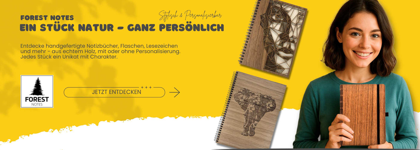 ➡️ Unsere einzigartigen Notizbücher und Schreibblöcke aus edlem Holzfurnier sind handgemacht, nachhaltig 🌍 und Made in Germany.