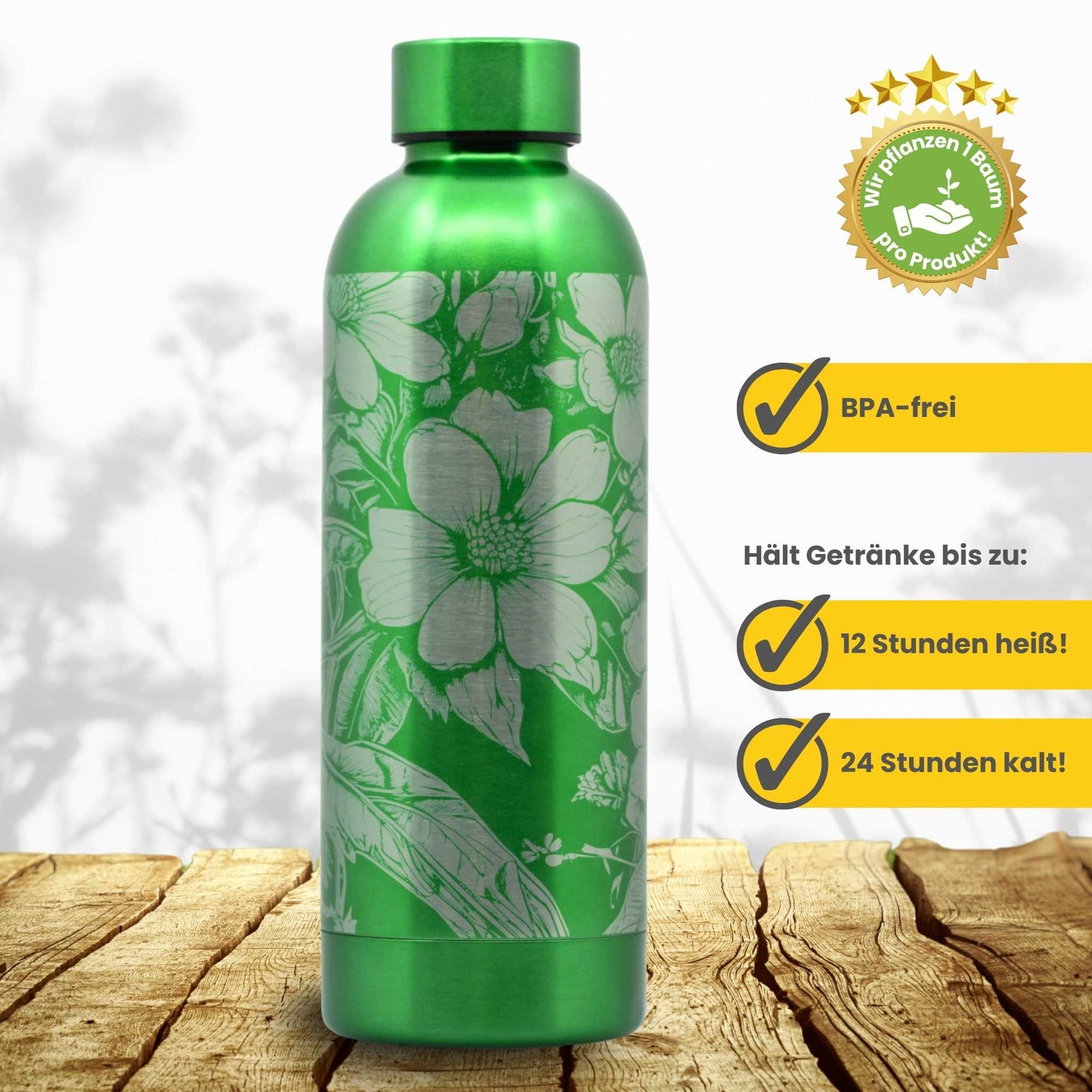 Trinkflasche aus Edelstahl 500ml - Blumenmotiv / Personalisierbar