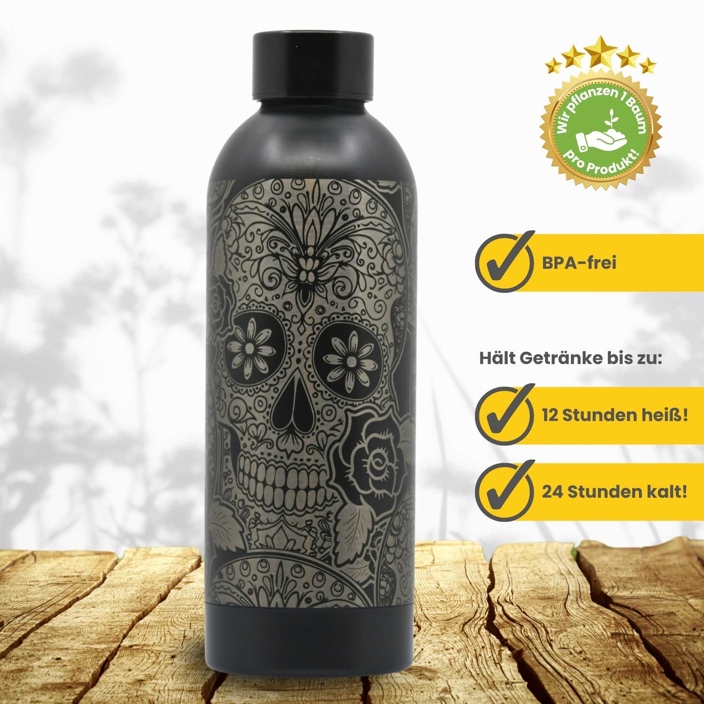 Trinkflasche aus Edelstahl 500ml - Skull / Personalisierbar