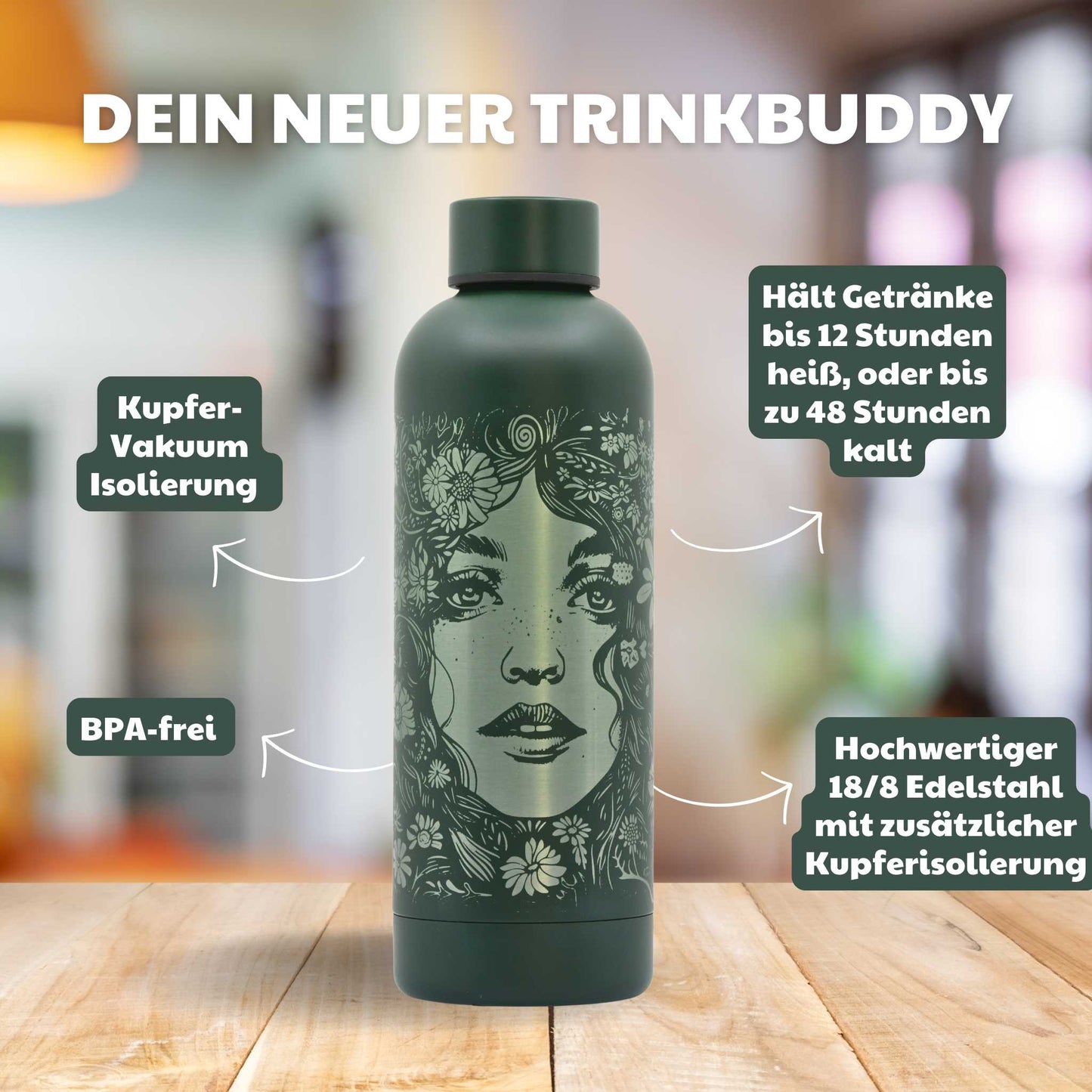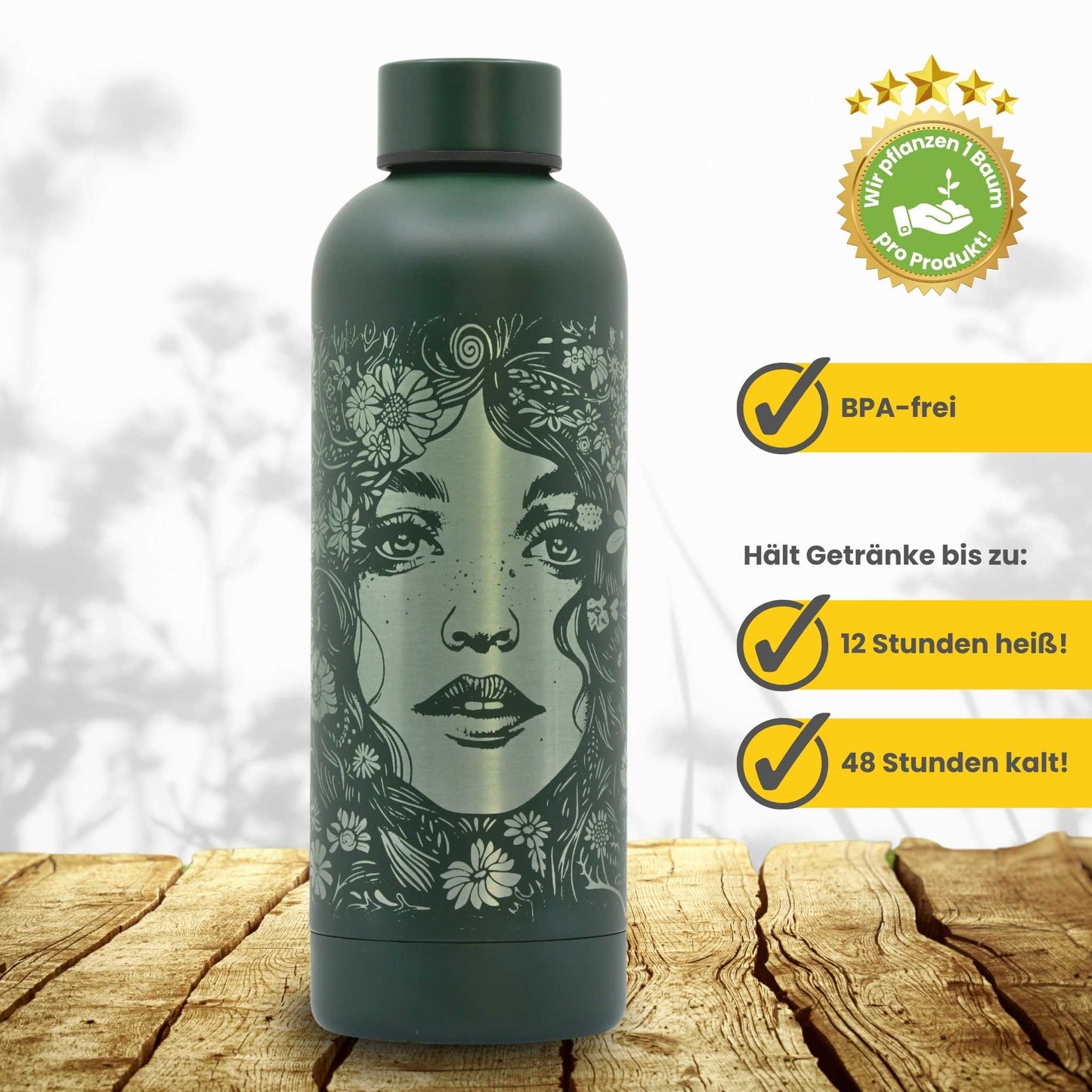 Kupfer-Vakuum Isolierflasche 500ml - Flowers / Personalisierbar