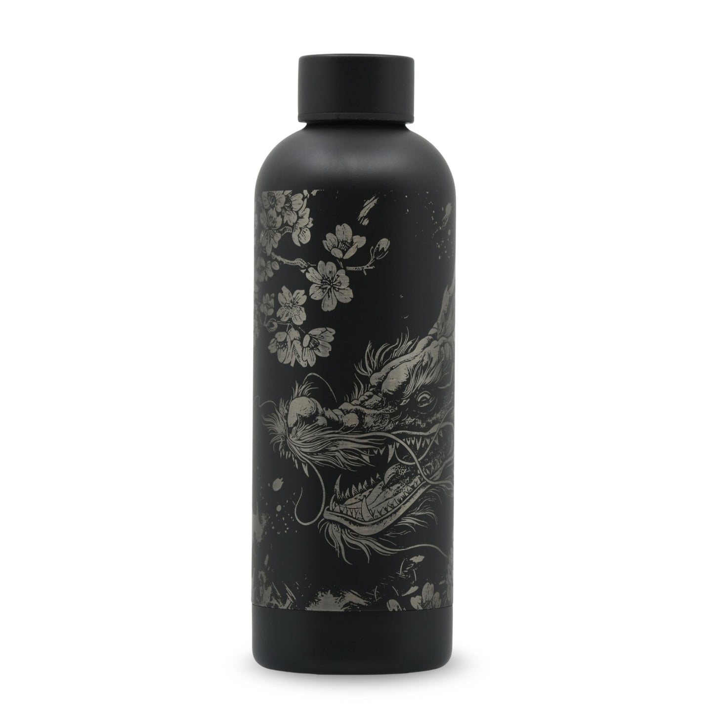 Grüne Isolierflasche mit Kupfer-Vakuum Isolierung und einer Lasergravur mit Drachenmotiv