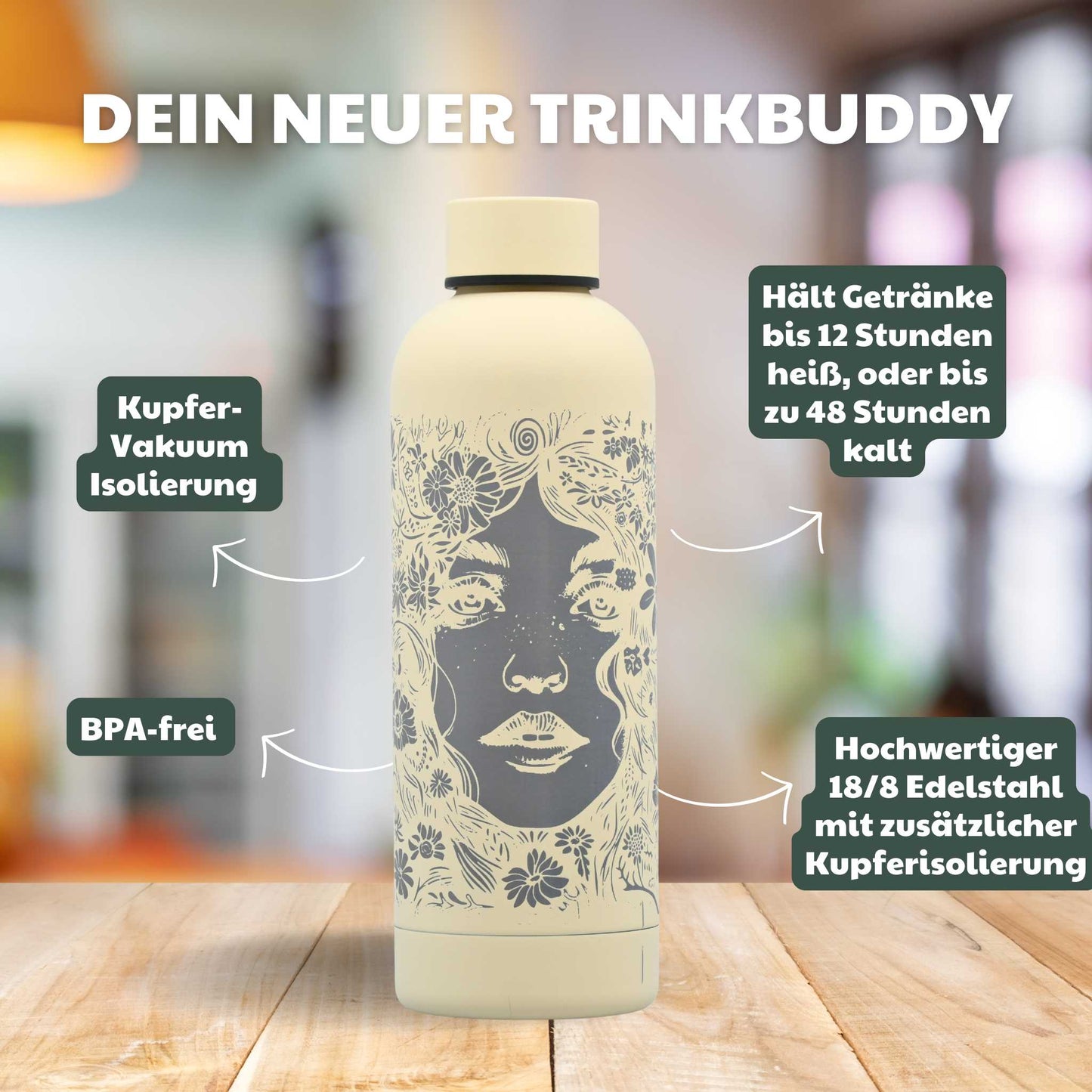 Kupfer-Vakuum Isolierflasche 500ml - Flowers / Personalisierbar