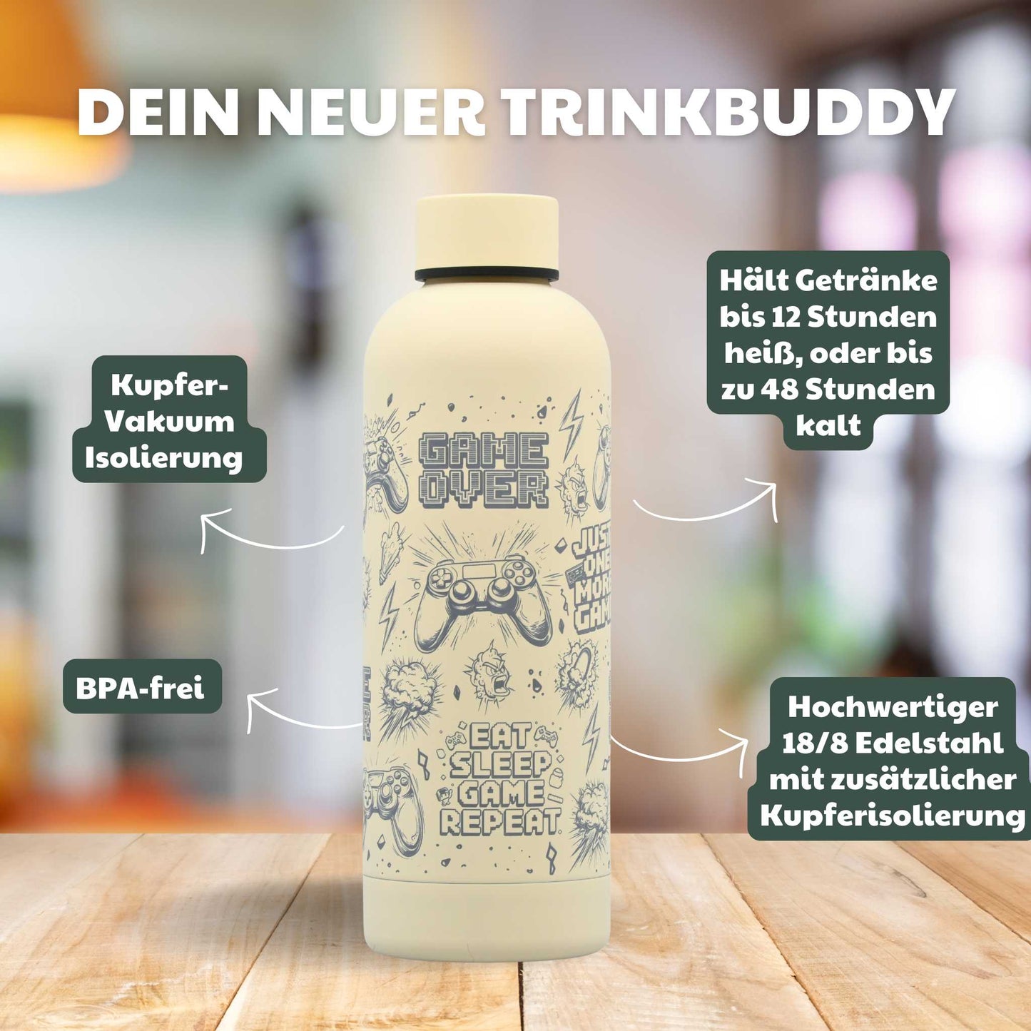 Kupfer-Vakuum Isolierflasche 500ml - Gamer / Personalisierbar