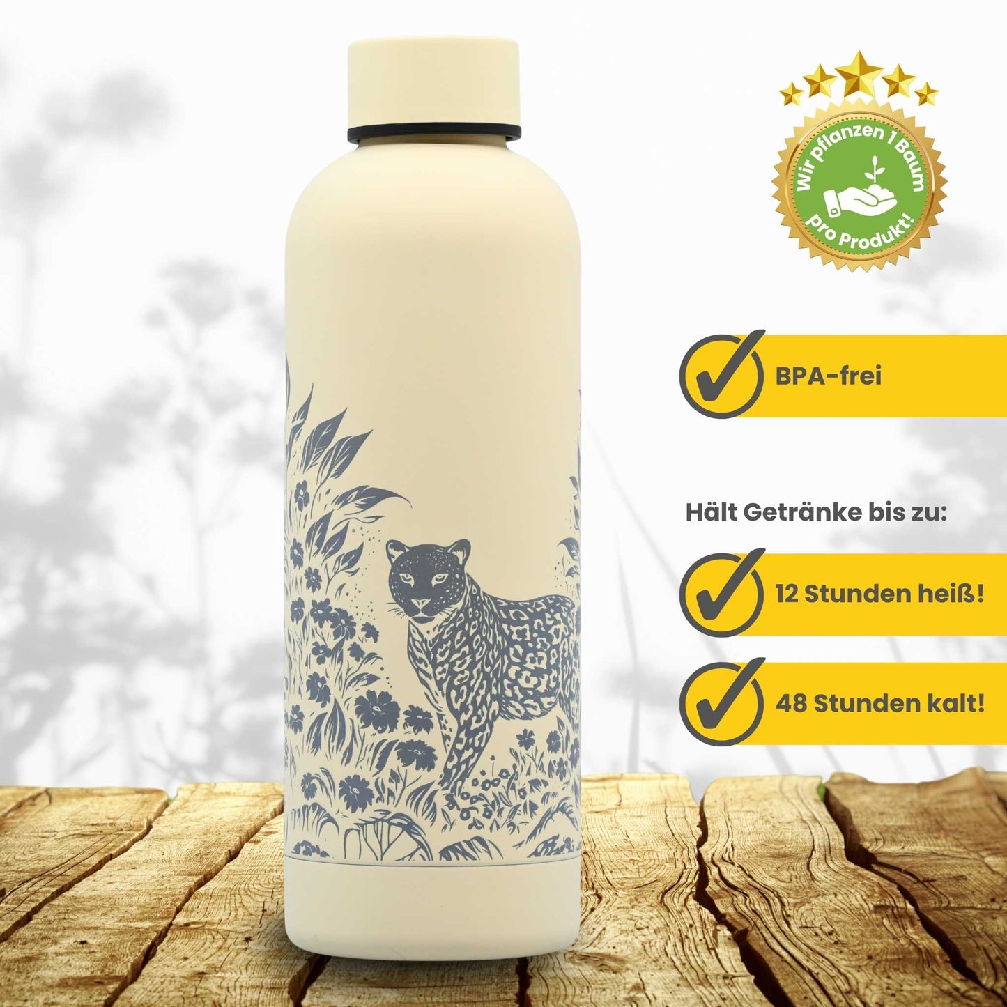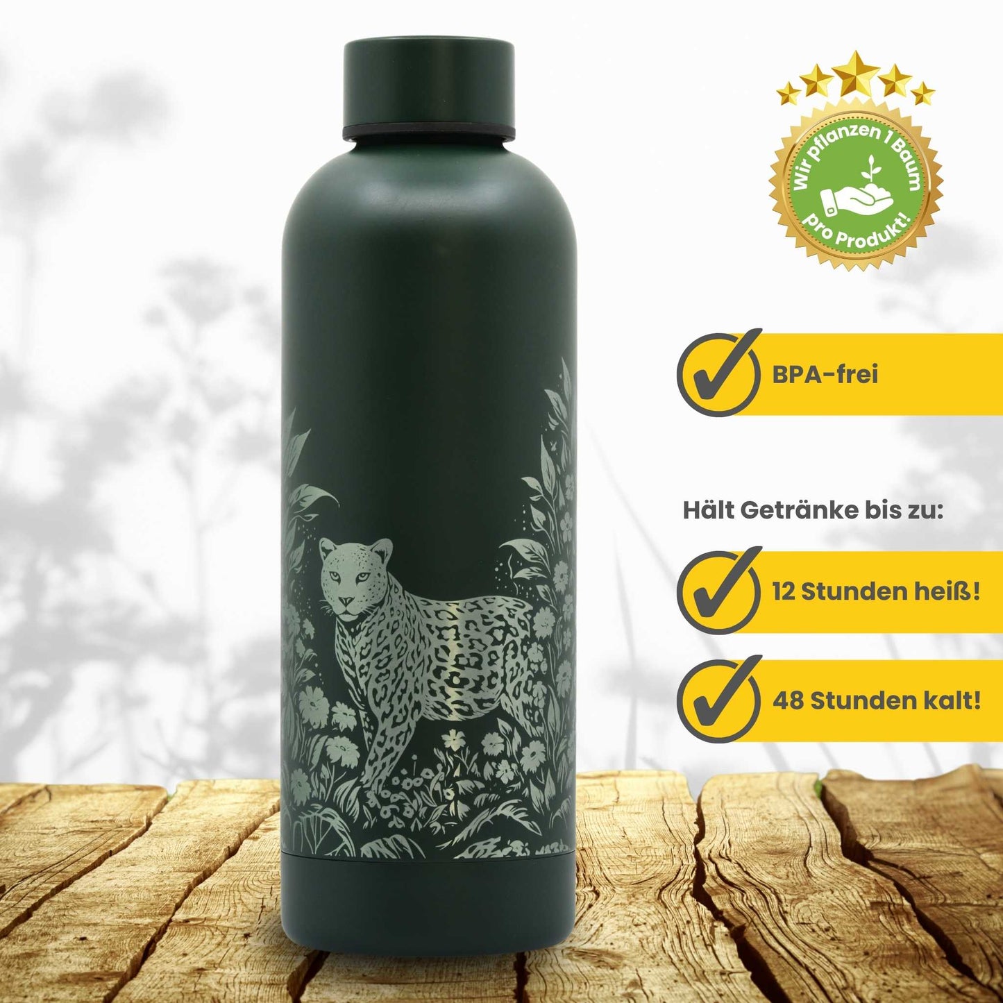 Trinkflasche aus Edelstahl mit Korkboden 500ml - Jaguar / Personalisierbar