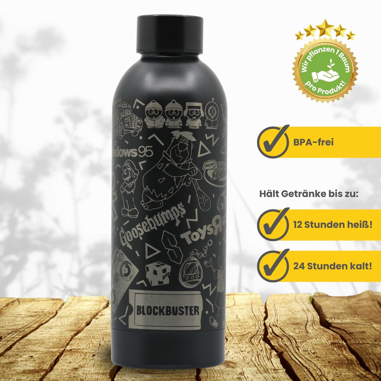 Trinkflasche aus Edelstahl 500ml - The 90´s / Personalisierbar