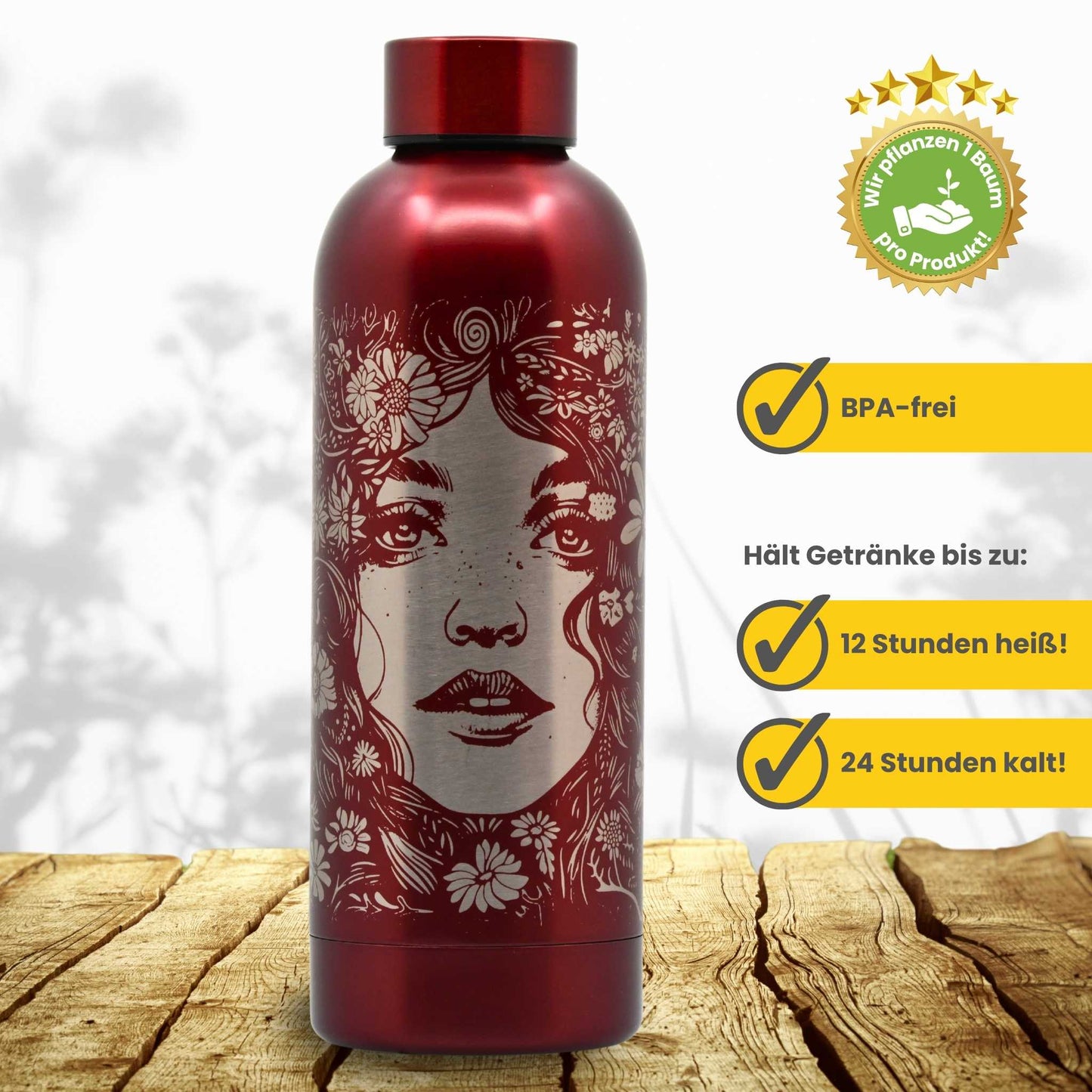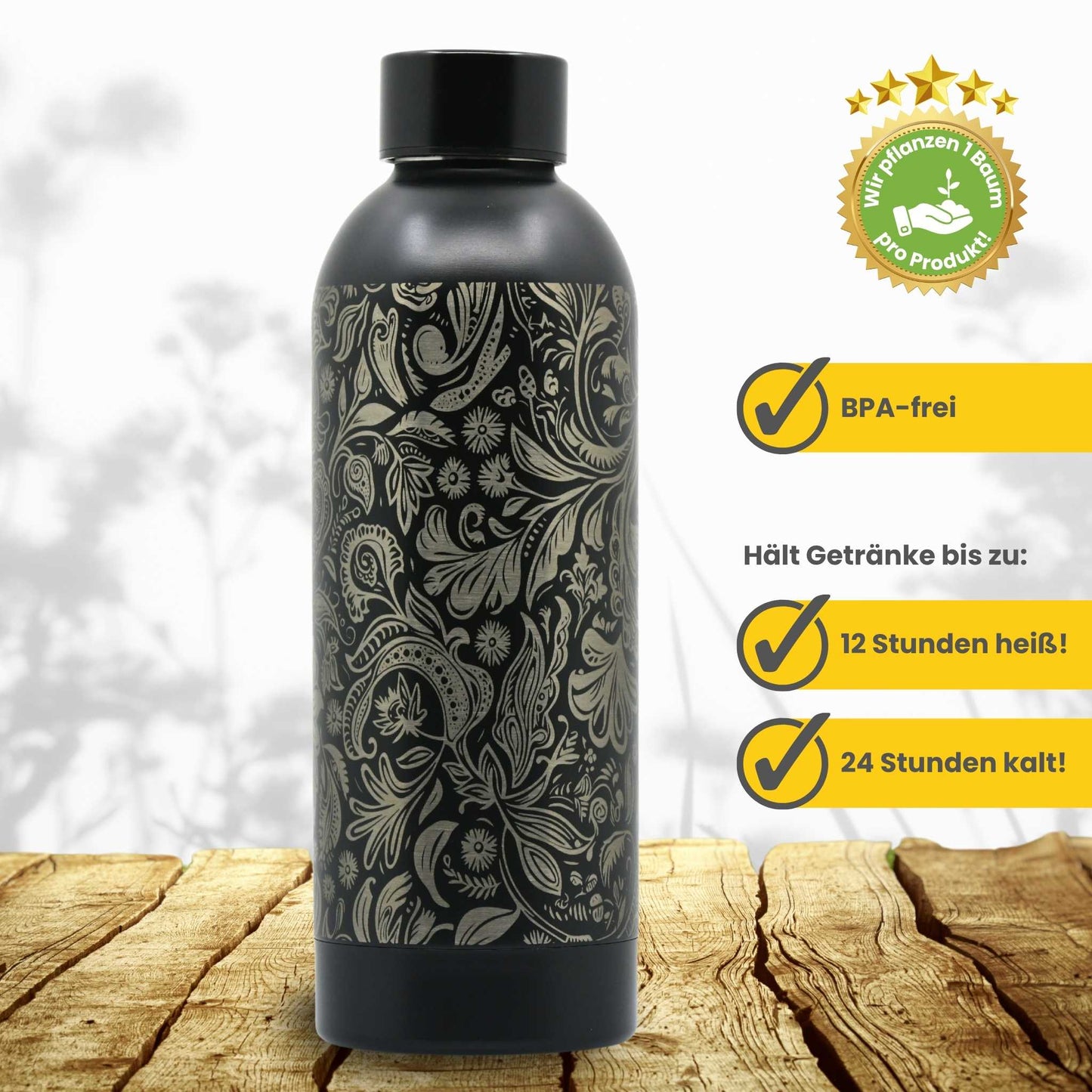 Trinkflasche aus Edelstahl 500ml - Flowers / Personalisierbar
