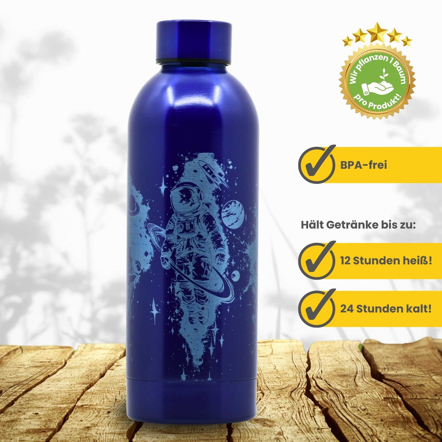 Trinkflasche aus Edelstahl 500ml - Space / Personalisierbar