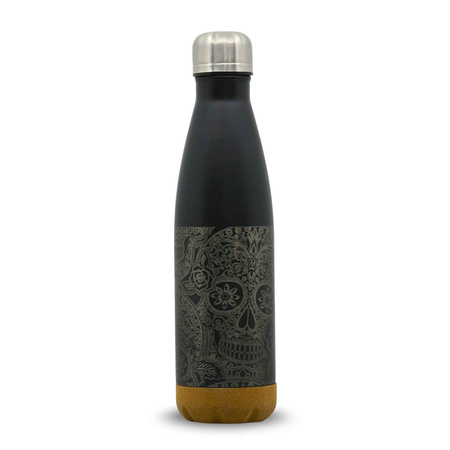 Trinkflasche aus Edelstahl mit Korkboden 500ml - Skull / Personalisierbar